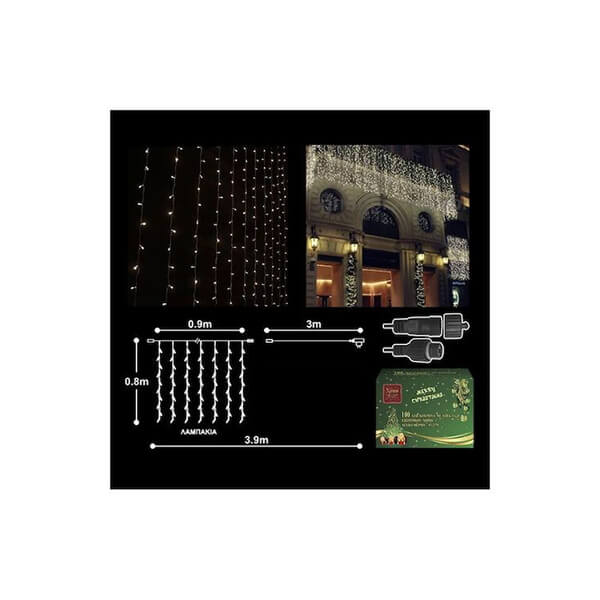 Χριστουγεννιάτικα λαμπάκια τύπου κουρτίνα, χωρίς μετασχηματιστή, με θερμό λευκό φως, για εσωτερικό και εξωτερικό χώρο. Μπορείτε να επεκτείνετε το μήκος τους συνδέοντας τα με άλλα λαμπάκια.