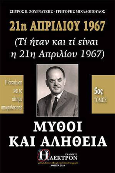 Με τον πέμπτο τόμο του βιβλίου των Σπύρου Ζουρνατζή και Γρηγόρη Μιχαλόπουλου με τίτλο "21η Απριλίου 1967, ΜΥΘΟΙ ΚΑΙ ΑΛΗΘΕΙΑ" κλείνει ένα κεφάλαιο της πρόσφατης Ελληνικής Ιστορίας και παρουσιάζεται γυμνή η αλήθεια μ’ έναν τρόπο που συναρπάζει τον αναγνώστη, γιατί είναι ζωντανοί διάλογοι υπευθύνων πρωταγωνιστικών προσώπων, που χάρη σ’ αυτή την αλματώδη οικονομική ανάπτυξη που πέτυχαν, η Ελλάς εισήλθε στην Ενωμένη Ευρώπη, ως ισότιμο μέλος, ακριβώς εντός του χρονικού ορίου προσαρμογής των είκοσι ετών (1961-1981).