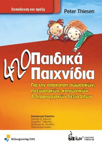 ISBN: 978-960-508-079-2 Συγγραφέας: ΤΙΣΕΝ ΠΙΤΕΡ Εκδοτικός οίκος: ΙΩΝ Σελίδες: 296 Διαστάσεις: 17Χ24 Ημερομηνία Έκδοσης: Ιανουάριος 2014 ΓΙΑ ΤΗΝ ΑΠΟΚΤΗΣΗ ΣΩΜΑΤΙΚΩΝ, ΠΝΕΥΜΑΤΙΚΩΝ, ΚΟΙΝΩΝΙΚΩΝ ΚΑΙ ΔΗΜΙΟΥΡΓΙΚΩΝ ΔΕΞΙΟΤΗΤΩΝ Αυτό το βιβλίο εργασιών στοχεύει στην εμβάθυνση και στη διεύρυνση της γκάμας παιχνιδιών,στην υποστήριξη των χαρούμενων βιωμάτων και της μάθησης με επίκεντρο τις ανάγκες του παιδιού,στην κατάδειξη βελτιωμένων όρων παιχνιδιού τόσο στο αυθόρμητο, όσο και στο κατευθυνόμενο παιχνίδι, σε σχέση με τα παιχνίδια και τους χώρους παιχνιδιού καιστην ενίσχυση της ικανότητας του παιδιού να παίζει. To «420 Παιδικά Παιχνίδια» αποτελεί ένα σημαντικό θεμελιώδης έργο για την επαγγελματική εκπαίδευση και τις σπουδές αλλά δίνει και πολλά εφαλτήρια και ιδέες για την καθημερινή πράξη. To βιβλίο μπορεί να χρησιμεύσει ως βοήθημα σπουδών και πρακτικής εξάσκησης για ενδιαφερόμενους παιδαγωγούς και κοινωνικούς παιδαγωγούς,εγχειρίδιο για παιδαγωγούς στο νηπιαγωγείο, στο ολοήμερο σχολείο, σε ιδρύματα παιδικής προστασίας, στο βρεφονηπιακό σταθμό και στο προνήπιο, καθώς και για ειδικούς της Κοινωνικής Παιδαγωγικής και δασκάλους του Δημοτικού,εφαλτήριο και βοήθημα για γονείς που ενδιαφέρονται να συμβάλουν ουσιαστικά στη σωστή ανάπτυξη του παιδιού τους.