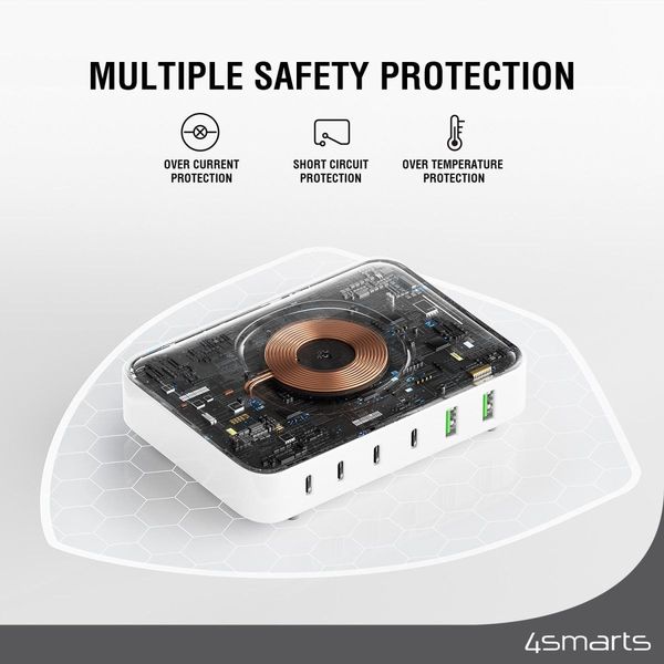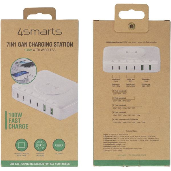 4SMARTS 7IN1 GAN CHARGING STATION 100W + QI WIRELESS WHITE