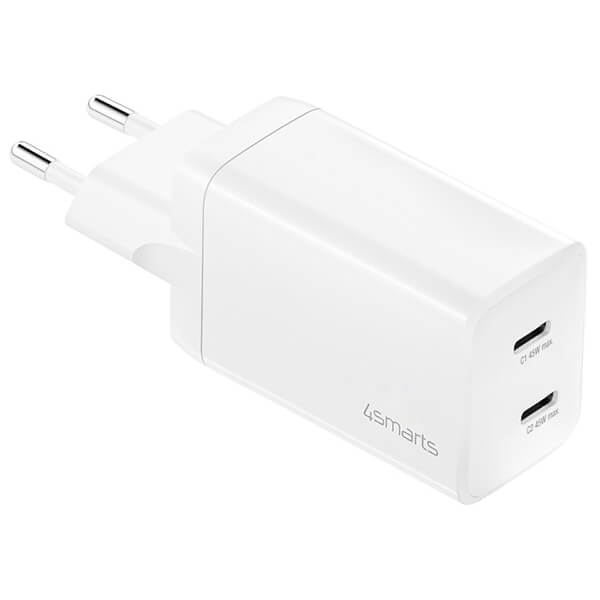• Εγγύηση: 2 χρόνια. DOA 7 ημερών 4SMARTS TRAVEL WALL CHARGER PDPLUG DUAL 45W GAN 2X USB TYPE-C PORTS WHITE