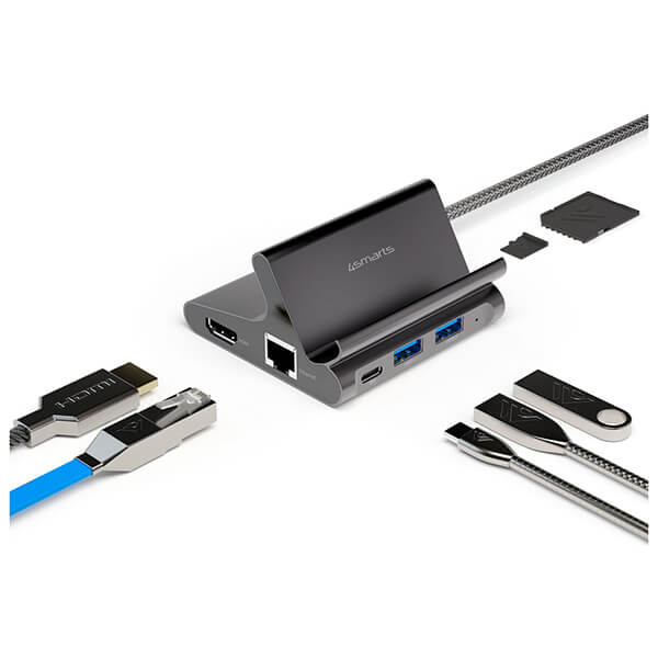 4SMARTS UNIVERSAL TABLET + SMARTPHONE STAND 7IN1 HUB PLUS DEX-MODE GREY PER.216452 PER.216452 4SMARTS 4SMARTS USB HUB