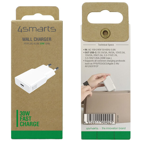 Ο 4SMARTS WALL CHARGER PDPLUG SLIM 30W GaN TYPE-C WHITE είναι ένας φορτιστής τοίχου υψηλής απόδοσης που ενσωματώνει την τελευταία λέξη της τεχνολογίας γρήγορης φόρτισης, προσφέροντας έως και 30W ισχύ και υποστήριξη για διάφορα πρωτόκολλα γρήγορης φόρτισης, όπως το PPS. Αυτά τα προηγμένα χαρακτηριστικά επιτρέπουν στο φορτιστή να προσαρμόζει δυναμικά την ταχύτητα φόρτισης, παρέχοντας τη μέγιστη ενεργειακή απόδοση χωρίς να υπερθερμαίνει ή να υπερφορτίζει τις συσκευές. Από smartphone και tablet μέχρι άλλες συμβατές συσκευές, η ταχύτατη φόρτιση μειώνει δραστικά τους χρόνους αναμονής και σου προσφέρει περισσότερο χρόνο για τα σημαντικά πράγματα. Ένας απαραίτητος σύντροφος για όσους αναζητούν τεχνολογία κορυφαίου επιπέδου.