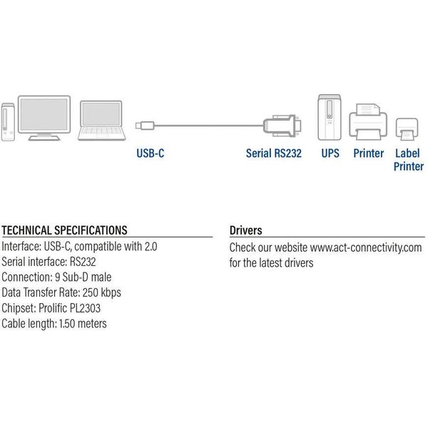 ACT AC6002 ADAPTER USB-C TO SERIAL 1.5 M PER.620821 PER.620821 ACT ACT CONVERTERS