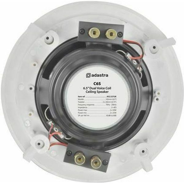 Το Adastra C6S (κωδικός 952.537UK) είναι ένα χωνευτό ηχείο οροφής 6.5" (165 mm), ειδικά σχεδιασμένο για μικρούς χώρους. Παρέχει στερεοφωνικό ήχο (δεξί και αριστερό κανάλι) από ένα μόνο σημείο, διατηρώντας πλήρη διαχωρισμό καναλιών. Διαθέτει διπλά tweeter θόλου mylar και dual voice-coil woofer από πολυπροπυλένιο, προσφέροντας πλούσιο και ισορροπημένο ήχο.