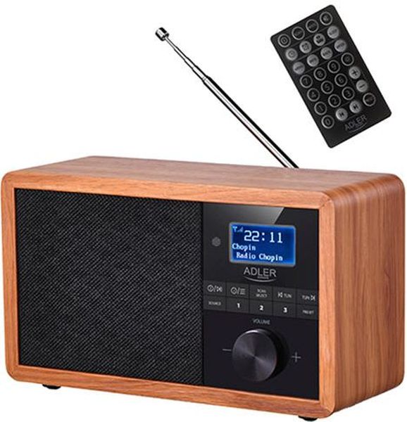 Το Adler AD 1184 είναι ένα σύγχρονο ραδιόφωνο DAB+ με Bluetooth που συνδυάζει την παραδοσιακή ακρόαση με σύγχρονες τεχνολογίες. Η κομψή ξύλινη κατασκευή του ταιριάζει σε κάθε χώρο, ενώ η δυνατότητα ασύρματης σύνδεσης μέσω Bluetooth επιτρέπει την αναπαραγωγή μουσικής από smartphone, tablet ή υπολογιστή.