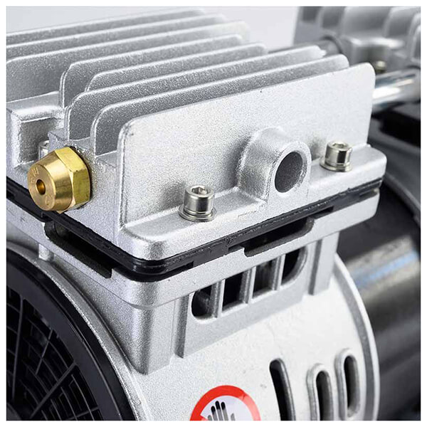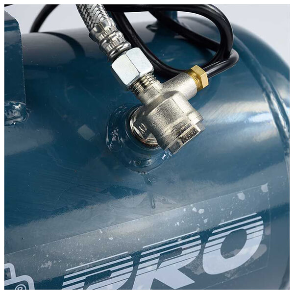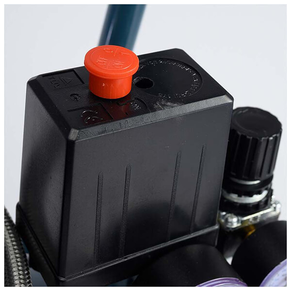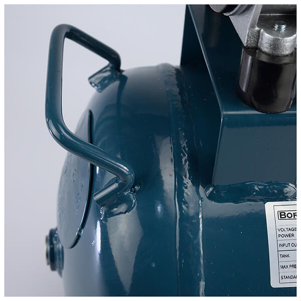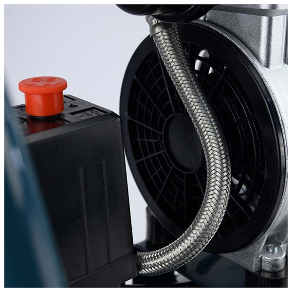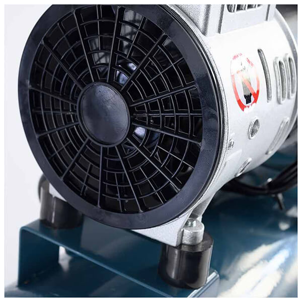 Αεροσυμπιεστής χαμηλού θορύβου με κινητήρα χωρίς λάδι. Με δύο μανόμετρα για ένδειξη πίεσης αέρα καζανιού και εξόδου. Το ελαφρύ καζάνι του σε συνδυασμό με την εργονομική λαβή και το σετ τροχών που φέρει, το καθιστούν εύκολο μεταφορά.