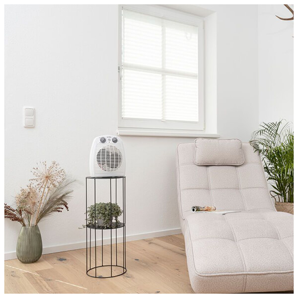 Αερόθερμο 2000W με 2 ρυθμίσεις θερμοκρασίας, ανεμιστήρα και θερμοστάτη, για να προσαρμόζετε ή να διατηρείτε στα επιθυμητά πλαίσια τη θερμοκρασία του χώρου.