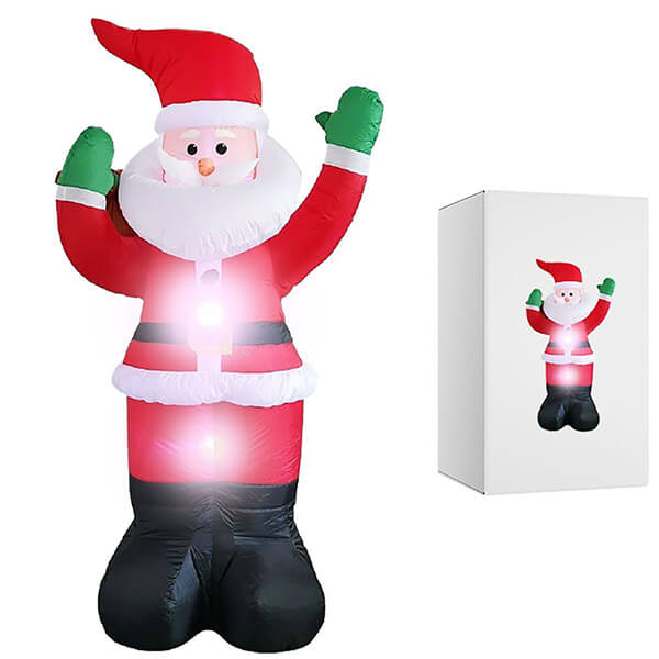 Διακοσμητική φωτιζόμενη φιγούρα Άγιος Βασίλης για να διακοσμήσει με την εορταστική του παρουσία τον χώρο σας. Για την στήριξη και την τοποθέτηση του διαθέτει υποδοχή που φουσκώνει με αέρα. Η κατασκευή του παρέχει προστασία από τις καιρικές συνθήκες και επιτρέπει την τοποθέτηση του σε εξωτερικούς χώρους. Με τροφοδοσία ρεύματος, κατάλληλη για χώρους όπου υπάρχει πρόσβαση σε πρίζα.
