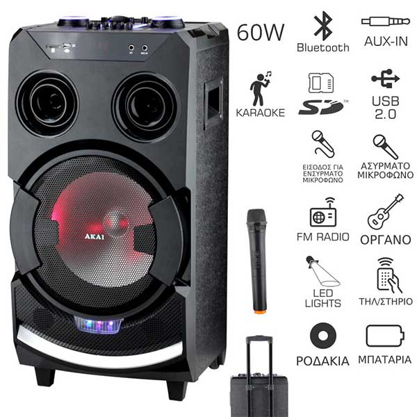 Αρχική > Ήχος - Εικόνα > Ηχεία Home Audio • Soundbars > AKAI ABTS-112 PARTY SPEAKER WITH BLUETOOTH AND KARAOKE 60W RMS