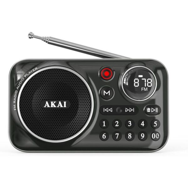 AKAI APR-500BK ΜΑΥΡΟ ΦΟΡΗΤΟ ΡΑΔΙΟΦΩΝΟ ΜΕ BLUETOOTH USB TF REC ΕΞΟΔΟ ΑΚΟΥΣΤΙΚΩΝ ΚΑΙ ΟΘΟΝΗ-2.5WPER.270291PER.270291AKAIAKAIRADIOSΚατηγορία: RADIOS •AKAI στην κατηγορία RADIOS Το φορητό ραδιόφωνο APR-500BK με ισχυρό μονοφωνικό ηχείο, προσφέρει καθαρό και δυνατό ήχο. Διαθέτει Bluetooth έκδοσης V5.3, για να συνδέσετε συσκευές που έχουν την ίδια τεχνολογία όπως κινητό τηλέφωνο και να ακούτε τη δική σας playlist. Επιπλέον, εάν έχετε αποθηκευμένα τραγούδια σε συσκευή USB ή σε κάρτα TF, μπορείτε να τις τοποθετήσετε στις αντίστοιχες θύρες και το ραδιόφωνο θα αναπαράγει αυτόματα τα περασμένα τραγούδια. Με τη λειτουργία της εγγραφής σε USB/TF, υποστηρίζεται η εγγραφή ήχου και φωνής μέσω του ενσωματωμένου μικροφώνου, αλλά και η ηχογράφηση του ήχου που αναπαράγεται από τη μονάδα σε λειτουργία εισόδου Bluetooth και ραδιοφώνου. Πρόκειται για ένα ραδιόφωνο τσέπης με ενσωματωμένο ιμάντα μεταφοράς, βάρους 0.11kg, για να ακούτε τα αγαπημένα σας τραγούδια όπου κι αν βρίσκεστε και εξαιρετικό σήμα, χάρη στην κεραία υψηλής ευαισθησίας. Μία τόσο μικρή συσκευή τελευταίας τεχνολογίας! • Πηγή ρεύματος: DC 5V, 1A • Ισχύς RMS: 2, 5W • Ισχύς PMPO: 3W • Bluetooth έκδοση 5.3 • Ισχύς εκπομπής καναλιού BT: 2.07dbm • Συχνότητα BT: 2, 4GHz-2, 483GHz • Εμβέλεια Bluetooth: 10 μέτρα • Συχνότητα FM: 87, 5-108MHz • Τύπος επαναφορτιζόμενης μπαταρίας: 3, 7V, 750mAh • Χρόνος φόρτισης μπαταρίας: ?2h • Χρόνος αναπαραγωγής: ?6h (75% ένταση), ?10h (50% ένταση), ?3h (max ένταση) • Έξοδος ακουστικών • Kεραία υψηλής ευαισθησίας • Απόκριση συχνότητας: 80Hz-20KHz • Μέγεθος ηχείου: 1, 5" • Υποστηριζόμενες μορφές ήχου: Mp3 • Λειτουργίες: USB, Κάρτα TF, Handsfree • Λειτουργία εγγραφής σε USB/TF: ηχογράφηση φωνής, ραδιοφώνου και λειτουργίας Bluetooth • Ενσωματωμένος ιμάντας μεταφοράς • Διαστάσεις προϊόντος: 10.4 x 2.7 x 6.1 cm • Βάρος: 0.115 kg • Χρώμα: Mαύρο• Εγγύηση: 2 χρόνιαAKAI APR-500BK ΜΑΥΡΟ ΦΟΡΗΤΟ ΡΑΔΙΟΦΩΝΟ ΜΕ BLUETOOTH USB TF REC ΕΞΟΔΟ ΑΚΟΥΣΤΙΚΩΝ ΚΑΙ ΟΘΟΝΗ-2.5W