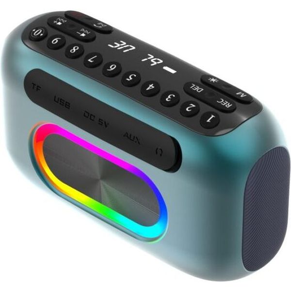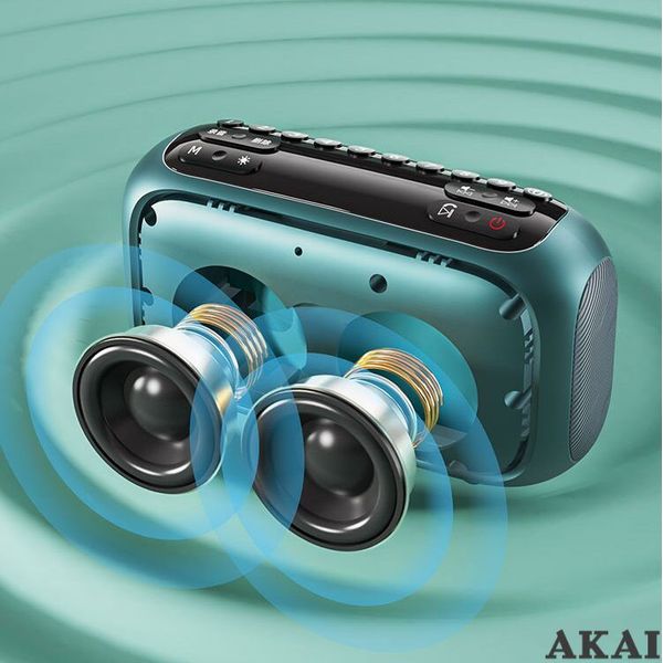 Έντονος σχεδιασμός - Καθαρός ήχοςΣυμπαγές, ισχυρό και γεμάτο προσωπικότητα – το AKAI APR-700 είναι ο απόλυτος σύντροφός σας για μουσική οπουδήποτε, οποτεδήποτε. Με Bluetooth 5.3, διπλά ηχεία, έντονα φώτα RGB LED και κομψή ψηφιακή οθόνη, έχει σχεδιαστεί για να ενεργοποιεί τον χώρο σας και να ταιριάζει με τη διάθεσή σας. Εναλλάξτε απρόσκοπτα μεταξύ Bluetooth, ραδιοφώνου FM με PLL, USB, κάρτας TF ή εισόδου AUX – όλα ελέγχονται εύκολα από το επάνω πάνελ. Χάρη στην μπαταρία 1800mAh και την ελαφριά κατασκευή του, το APR-700 διατηρεί τον ρυθμό σας είτε βρίσκεστε στο σπίτι, σε εξωτερικούς χώρους είτε εν κινήσει.Τεχνικές ΠροδιαγραφέςΈκδοση Bluetooth: 5.3Βελτίωση εκπομπών Bluetooth: 1,25 dBmPutere RMS: 2 x 3WPutere PMPO: 2 x 5WDifuzoare: 2 x 45mmΥποστήριξη μορφοποίησης ήχου: MP3, WAV, APE, FLACΡαδιόφωνο συχνότητας FM: 87,5–108 MHzΛειτουργία ραδιοφώνου: Sintonizare PLLΣυνδεδεμένα μέσα: USB-max 32GB, κάρτα TF/MicroSD, AUX-inΧρόνος αναπαραγωγής:– έως 6 ώρες σε ένταση 50%– περίπου 4 ώρες σε ένταση 75%Χρόνος φόρτισης: 3–4 ώρεςΑπόκριση συχνότητας: 80Hz – 20kHzΑντίσταση: 4ΩΛόγος σήματος προς θόρυβο (S/N): 55dBΠαραμόρφωση: 10%Μπαταρία: 3.7V / 1800mAh λιθίου, 32.4gΤροφοδοσία: DC 5V / 1AΚατανάλωση ισχύος: DC 5VΟθόνη: LED / ΨηφιακήΥλικό θήκης: ABSΦώτα: RGB Laser LED