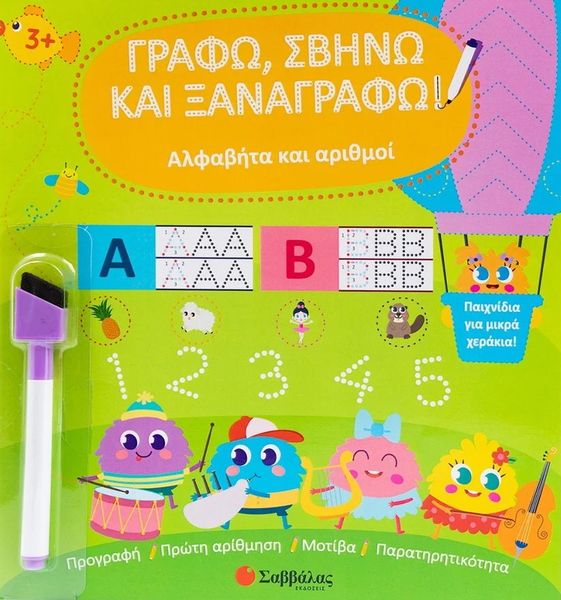 Ένα διασκεδαστικό βιβλίο δραστηριοτήτων γεμάτο παιχνίδια για μικρά χεράκια! Στις σελίδες του μπορείς να παίζεις, να γράφεις, να ζωγραφίζεις και να σχεδιάζεις ξανά και ξανά με τον μαγικό μαρκαδόρο που σβήνει! Οι θεματικές των δραστηριοτήτων του βιβλίου είναι: