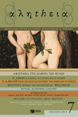 Η Αληthεια είναι μια λέξη που πλάθεται από δύο γλώσσες και φιλοδοξεί να αποτελέσει τη γέφυρα ανάμεσα στην ελληνική γλώσσα και τη γαλλική σκέψη. Το περιοδικό είναι ο χώρος στον οποίο συντελείται μια γόνιμη αντιπαράθεση ανάμεσα στα γνωστικά πεδία της ψυχανάλυσης, της φιλοσοφίας, της λογοτεχνίας και της τέχνης. Στο 7ο τεύχος του περιοδικού ξεχωρίζει το αφιέρωμα στη λακανική έννοια της μη διάφυλης σχέσης καθώς και κείμενα Ελλήνων και ξένων στοχαστών με αφορμή την σημερινή οικονομική και πολιτική κρίση.