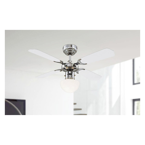Ανεμιστήρας οροφής της Westinghouse διαμέτρου 90 εκατοστών με φωτισμό. Η ποιότητα κατασκευής και η χρήση υψηλής τεχνολογίας αποτελεί εγγύηση για την αγορά του ανεμιστήρα που σας ταιριάζει. Η Westinghouse δίνει δεκαετή εγγύηση για το μοτέρ των ανεμιστήρων της! Η χρήση ανεμιστήρων οροφής στους χώρους προσφέρει εξοικονόμηση ρεύματος και ενέργειας, ενώ αποτελεί την πιο υγιεινή επιλογή για δροσιά. Δεν παγώνει ούτε ξηραίνει την ατμόσφαιρα. Αντίθετα επιτυγχάνει την πτώση της θερμοκρασίας έως και 8 °C και την διάχυση του δροσερού αέρα σε όλο το χώρο. Επίσης, και το χειμώνα η χρήση του ανεμιστήρα οροφής με την αντίστροφη περιστροφή συντελεί κατά 10% στην εξοικονόμηση ενέργειας, καθώς διευκολύνει την κυκλοφορία του ζεστού αέρα που εγκλωβίζεται στην οροφή. Χαρακτηριστικά- Έλικες σε χρώμα ασημί. - Ενσωματωμένος φωτισμός με προστατευτικό σε σχέδιο μανιτάρι - απαιτεί μια λάμπα τύπου E27, μέγιστης ισχύος 60W (δεν περιλαμβάνεται). - Με αλυσίδα οροφής. - Δυνατότητα χρήσης τηλεχειρισμού. - Υποστηρίζει λειτουργία ανάποδης περιστροφής. - Ιδανικός για χώρους μέχρι 12 τετραγωνικά μέτρα. - Εγγύηση: 10 χρόνια στο μοτέρ και 2 χρόνια στα υπόλοιπα μέρη. DOA 7 ημερών Για την ισχύ της εγγύησης, η εγκατάσταση πρέπει να γίνει από πιστοποιημένο ηλεκτρολόγο.