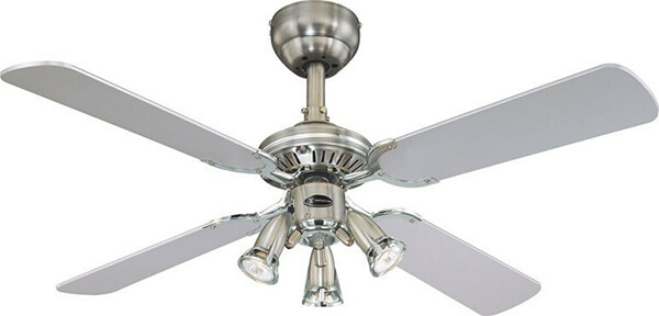 Ανεμιστήρας οροφής της Westinghouse με ισχύ 43 Watt και διάμετρο 105 εκατοστά. Διαθέτει επίσης τρεις θέσεις για λάμπες.