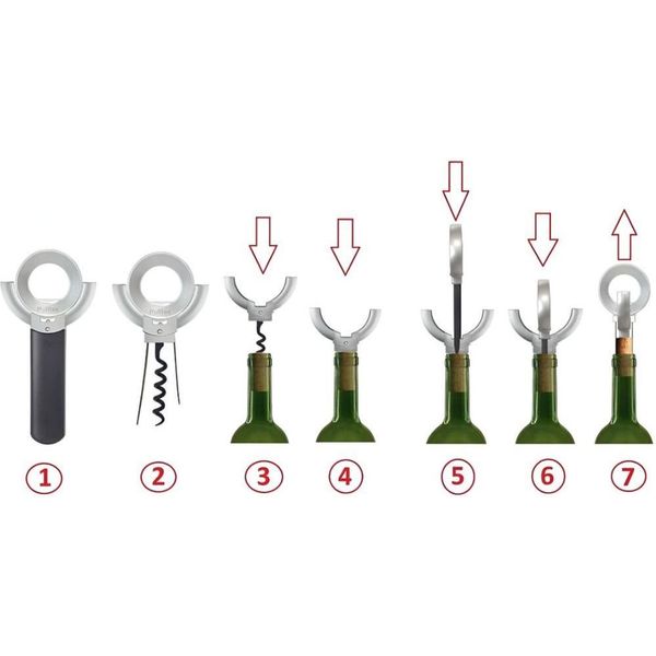 Δείτε στην παρακάτω εικόνα την απλή χρήση του Pulltex Dual Opener VinOline Corkscrew: