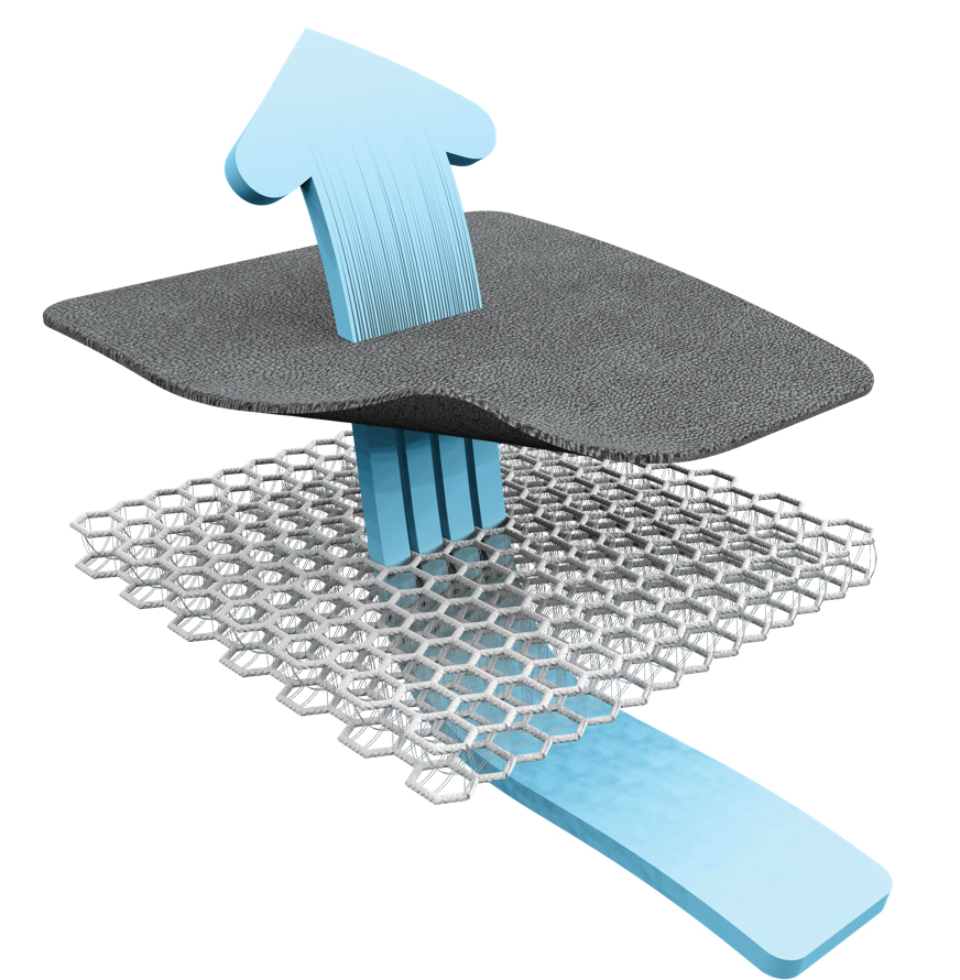 • 3D κυψελωτή δομή στο κάτω μέρος, που επιτρέπει τη συνεχή κυκλοφορία του αέρα.