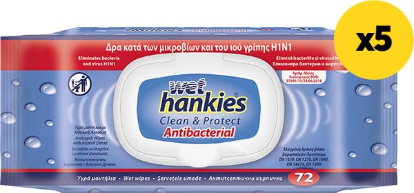 ΑΝΤΙΒΑΚΤΗΡΙΔΙΑΚΑ ΜΑΝΤΗΛΙΑ HANKIES THICK ANTIBACTERIAL 72ΤΕΜ 5ΤΜΧ