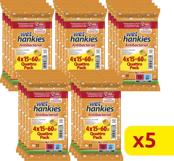 ΑΝΤΙΒΑΚΤΗΡΙΔΙΑΚΑ ΜΑΝΤΗΛΙΑ WET HANKIES ANTIB. ORANGE QUATTRO PACK 4X15 X5