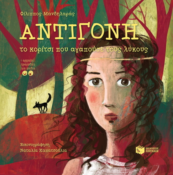 Η ιστορία της Αντιγόνης, της βασιλοπούλας που επέμενε να τιμήσει τη λυκίσια καταγωγή της, βάζοντας την πάνω από την εξουσία και τους νόμους του βασιλιά Κρέοντα. Έτσι, προτίμησε να ακολουθήσει τον πατέρα της στο σκοτεινό δάσος όπου ζούσε, γιατί μόνο έτσι πίστευε ότι θα παραμείνει ελεύθερη! Μια σύγχρονη ματιά στους τραγικούς ήρωες, με κάθε σεβασμό στα παιδιά που διαβάζουν πρώτη φορά την ιστορία τους.
