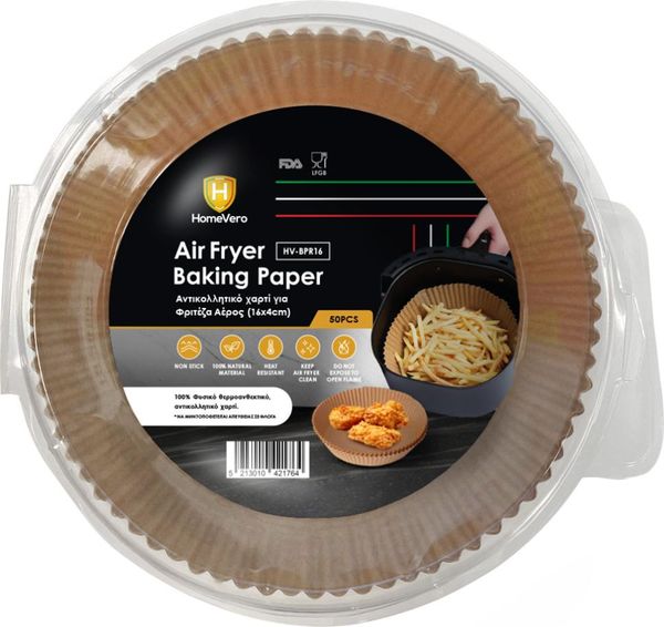 Με τα αντικολλητικά χαρτιά ψησίματος Homevero δε θα χρειάζεται πια να ανησυχείτε για το καθάρισμα μετά. Βάλτε στον κάδο της φριτέζας το αντικολλητικό χαρτί, φτιάξτε τραγανές πατάτες, ξεροψημένες μπριζόλες, ζουμερά μπιφτέκια και μετά το μόνο σίγουρο είναι πως ο κάδος της φριτέζας σας θα είναι καθαρός σαν καινούριος! Η λαδόκολλα κρατά τα υπολείμματα του φαγητού και τα λίπη μακριά από τον κάδο του air fryer. Και το σημαντικότερο; Η γεύση παραμένει αναλλοίωτη!