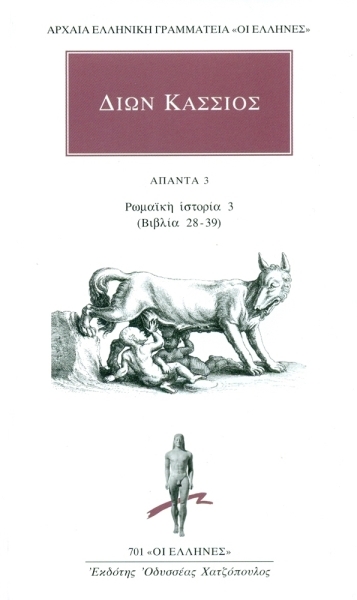 ISBN: 978-960-352-774-9 Συγγραφέας: ΔΙΩΝ ΚΑΣΣΙΟΣ Εκδοτικός οίκος: ΚΑΚΤΟΣ Μετάφραση: ΠΟΥΤΟΣ ΠΑΝΑΓΙΩΤΗΣ, ΠΡΟΕΣΤΟΣ ΓΙΩΡΓΟΣ Σελίδες: 544 Διαστάσεις: 12,5Χ21 Ημερομηνία Έκδοσης: Ιούνιος 2018 ΡΩΜΑΙΚΗ ΙΣΤΟΡΙΑ 3 ΒΙΒΛΙΑ 28-39 ΒΙΒΛΙΟ ΚΗ: Δολοφονία Πόπλιου Φούριου. Καταδίκη και αυτοεξορία Ρουτίλιου. Σύγκρουση Δρούσου και Καιπίωνα. ΒΙΒΛΙΟ ΚΘ: Λούπος, Μάριος, πόλεμος με Μάρσους. ΒΙΒΛΙΑ Λ-ΛΕ: Διένεξη με Μιθριδάτη και σφαγή Ρωμαίων της Ασίας. Εμφύλιος, αγριότητες Μάριου. Συμμαχικός πόλεμος. Η δράση του Φιμβρία στην Ασία. Προγραφές και σφαγές στη Ρώμη από τον Σύλλα. ΑΠΟΣΠΑΣΜΑΤΑ ΑΒΕΒΑΙΗΣ ΘΕΣΗΣ: Η ονομασία Αυσονία. Γενικά συμπερασμάτα για τη δημοκρατία και για τους εξουσιαζομένους. Μικρά αποσπάσματα. ΒΙΒΛΙΟ ΛΣΤ: Νίκες Λούκουλλου στην Αρμενία και στον Πόντο, ξεσηκωμός στρατευμάτων κατά Λούκουλλου. Κατάκτηση Κρήτης. Ο Πομπήιος καταστέλλει την πειρατεία. Πολιτικές ζυμώσεις. Ο Πομπήιος νικά τον Μιθριδάτη, υπερισχύει σε Αρμενία και Καύκασο. ΒΙΒΛΙΟ ΛΖ: Κατακτήσεις Πομπήιου σε Καύκασο και Συρία. Κατάκτηση της Ιερουσαλήμ, πληροφορίες για τους Εβραίους. Συνωμοσία Κατιλίνα και θάνατός του. Ανάδειξη Καίσαρα και Πρώτη Τριανδρία. ΒΙΒΛΙΟ ΛΗ: Σύγκρουση Καίσαρα με Βίβουλο και Κικέρωνα. Κλώδιος σύμμαχος του Καίσαρα. Εξορία Κικέρωνα στη Μακεδονία. Παρηγορητικοί λόγοι Φιλίσκου προς τον Κικέρωνα. Νίκες Καίσαρα κατά Γαλατών και Γερμανών. ΒΙΒΛΙΟ ΛΘ: Νίκες Καίσαρα εναντίον γαλατικών φύλων, επιστροφή Κικέρωνα, αναταραχές στη Ρώμη. Ο Πτολεμαίος στη Ρώμη, παρασκηνιακή δράση. Συνεργασία Πομπήιου-Κράσσου και ανάδειξή τους σε υπάτους. Νίκες Καίσαρα σε Γαλατία, επίθεση σε Βρετανία. Πομπήιος και Γαβίνιος αποκαθιστούν τον Πτολεμαίο στον θρόνο.
