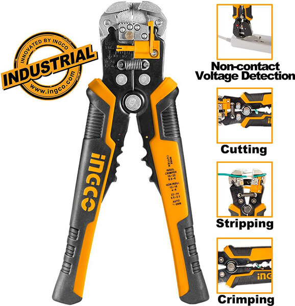 Ο INGCO HWSP102429 είναι ένας πολυλειτουργικός απογυμνωτής καλωδίων, που συνδυάζει απογύμνωση, κοπή και πρεσάρισμα καλωδίων με ανιχνευτή ρεύματος NCV για ασφαλή χρήση χωρίς επαφή. Κατάλληλος για σύρματα χαλκού και αλουμινίου.