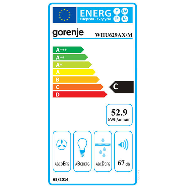 ΑΠΟΡΡΟΦΗΤΗΡΑΣ GORENJE WHU629AX/M HAP.708483 HAP.708483 GORENJE GORENJE ΑΠΟΡΡΟΦΗΤΗΡΕΣ Κατηγορία: ΑΠΟΡΡΟΦΗΤΗΡΕΣ •GORENJE στην κατηγορία ΑΠΟΡΡΟΦΗΤΗΡΕΣ Ελεύθερος απορροφητήρας GORENJE WHU629AX.-Μπορεί να τοποθετηθεί είτε κάτω από ντουλάπια, είτε μόνος του. -Η μέγιστη απορροφητική ισχύς είναι 381 m³/h, η οποία μπορεί να καλύψει ικανοποιητικά χώρους έως και 13 τετραγωνικά μέτρα (με ύψος 2, 85 μέτρα). -Ο αέρας που τραβάει ο απορροφητήρας είτε εξάγεται μέσω σωλήνα είτε ανακυκλώνεται στον απορροφητήρα. Για τη λειτουργία με εξαγωγή αέρα χρειάζεται να εγκατασταθεί σωλήνας που θα βγάζει τον αέρα έξω από την κουζίνα. -Δέχεται μεταλλικά φίλτρα, τα οποία αφαιρούνται και πλένονται στο πλυντήριο πιάτων ή στο χέρι. Επιπλέον δεν χρειάζονται συχνή αντικατάσταση.Χαρακτηριστικά • Απορροφητική Ισχύς: (Max)381 m³/h.• Ενεργειακή κλάση: C.• Κατανάλωση Ενέργειας: 52.9 kWh/έτος.• Ισχύς: 90 W.• Επίπεδο θορύβου: 67dB(A).• Ρευστοδυναμική Απόδοση: E.• Απόδοση Φωτισμού: B.• Φωτισμός: LED.• Τάση: 220-240V.• Διαστάσεις: 12.5 ? 59.6 ? 46.8 cm.• Χρώμα: stainless steel.• Εγγύηση: 2 χρόνια.