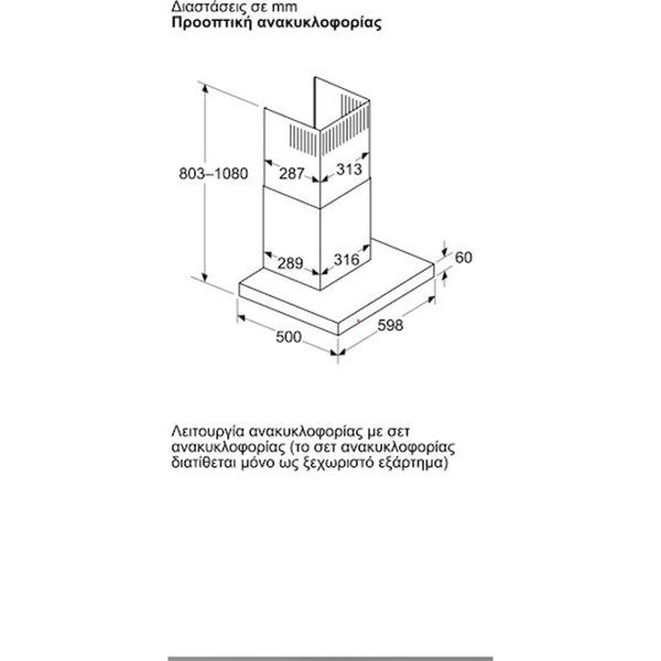 Διαστάσεις σε λειτουργία ανακυκλοφορίας (ΥxΠxΒ): 803-1080 x 598 x 500 mm.