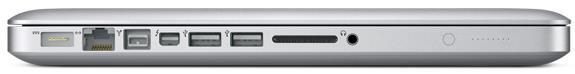 Θύρες επικοινωνίας: 2 x USB 2.0, 1 X FireWire 800Mbps, SD card slot, Kensington lock slot, Mini DisplayPort για σύνδεση με εξωτερική οθόνη, 1 x Ethernet (RJ-45), Συνδυασμένη είσοδος ήχου (υποστηρίζει ψηφιακή έξοδο ήχου), 1 x DC-in jack για AC adapter.