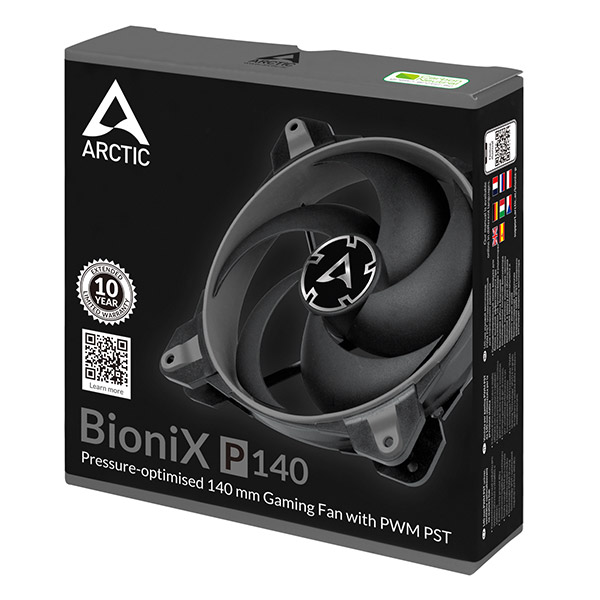 Το BioniX P140 διαθέτει πλήρως επανασχεδιασμένες λεπίδες ανεμιστήρα και είναι βελτιστοποιημένο για υψηλή στατική πίεση. Χάρη σε αυτό, είναι ιδιαίτερα αποτελεσματικό όταν χρησιμοποιείται σε ψήκτρες και σε καταστάσεις με υψηλότερη αντίσταση αέρα. Η ευρεία κλίμακα RPM από 200 έως 1950 RPM μπορεί να ρυθμιστεί και συγχρόνως με άλλους ανεμιστήρες χάρη στην τεχνολογία κοινής χρήσης PWM (PST) της ARCTIC. Το νέο μοτέρ χαμηλή θερμοκρασία πηνίου αυξάνει σημαντικά τη διάρκεια ζωής του ανεμιστήρα.