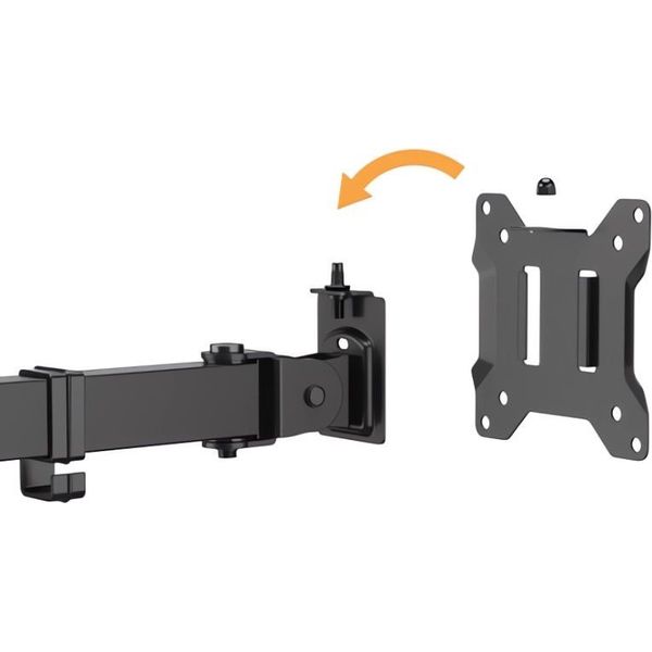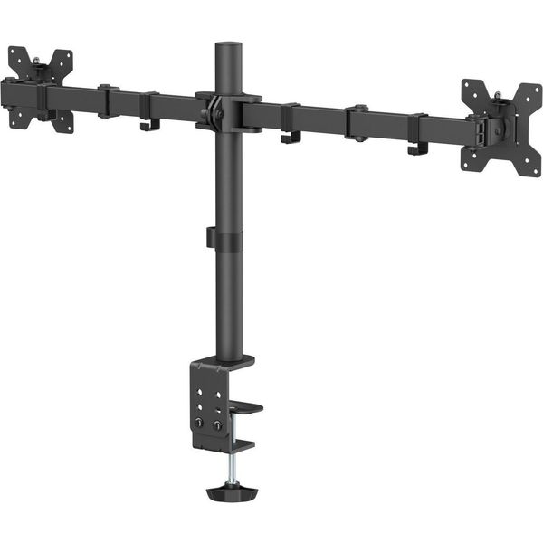 Συμβατό μέγεθος οθόνης: 17" 27" Χωρητικότητα φορτίου ανά οθόνη: 10 kg Συμβατότητα VESA: 75?75, 100?100 Εύρος κλίσης: +45° έως -45° Εύρος περιστροφής: +90° έως -90° Περιστροφή οθόνης: +180° έως -180° Υλικό: Χάλυβας, Αλουμίνιο, Πλαστικό Χρώμα: Ματ Μαύρο Τύπος τοποθέτησης: Ακροδέκτης ή είσοδος καλωδίου Δρομολόγηση καλωδίων: Ναι Συνολικό βάρος: 3,5 kg Διαστάσεις: 45 ? 21 ? 10 cm Περιεχόμενο συσκευασίας: 1x αρθρωτή βάση για δύο οθόνες, υλικό στερέωσης, 2x κλειδιά Allen (3 / 5 mm), οδηγίες συναρμολόγησης Εγγύηση: 2 Χρόνια