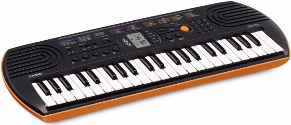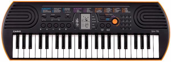Ένα αρμόνιο ειδικά σχεδιασμένο για μικρά δάκτυλα, αλλά με μεγάλες δυνατότητες ώστε να διασκεδάσει όλη την οικογένεια, το Casio SA-76 είναι ένας υπέροχος και πολύχρωμος τρόπος για να μάθετε στα παιδιά σας τον μαγικό κόσμο της μουσικής. Το Casio SA-76 διαθέτει 100 ενσωματωμένους ήχους και περιλαμβάνει ήχους όπως Grand Piano, κιθάρες, σαξόφωνα, τρομπέτες, βιολιά αλλά και πολλά άλλα. Επιπλέον το SA-76 διαθέτει 50 διαφορετικούς ρυθμούς ντραμς, τους οποίους μπορείτε να παίξετε σε οποιαδήποτε ταχύτητα επιθυμείτε. ο SA-76 διαθέτει 2 ενσωματωμένα ηχεία, καθώς και έξοδο ακουστικών, ώστε να μπορείτε να παίξετε ή να μελετήσετε χωρίς να ενοχλείτε τους γύρω σας. Η μεγάλη LCD οθόνη σας δίνει ενδείξεις όπως ποιον ήχο ή ποιο τραγούδι έχετε επιλέξει, έχει μετρονόμο και ακόμα μπορείτε να δείτε ποιες νότες παίζετε.