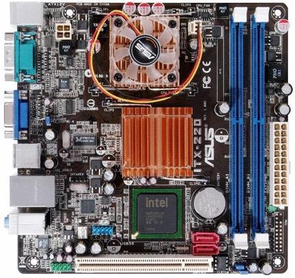 αξιοπιστία και τον πλούσιο εξοπλισμό τους. • Τοποθέτηση: Mini ITX με διαστάσεις 17.1 x 17.1cm. • Υποδοχή CPU: Socket 479. • Επεξεργαστής: Intel Celeron 220 (τοποθετημένος στην μητρική). • Ταχύτητα FSB: 533MHz. • Chipset: Intel 945GC /ICH7. • Υποστήριξη Καρτών Γραφικών: Δεν διαθέτει κάποιο slot. • Υποδοχές Μνήμης: 2 x DDR2 533 με δυνατότητα επέκτασης έως 4GB (Dual channel, 240-pin). (σε συστήματα Windows XP και Vista 32-bit η διαθέσιμη μνήμη ενδέχεται να είναι μικρότερη των 4GB λόγω περιορισμού του chipset, σε Windows XP και Vista 64-bit δεν υπάρχει κάποια δέσμευση). • Υποστήριξη Δίσκων: 2 x Serial ATA 3.0 Gb/s. • Θύρες Επικοινωνίας (Εξωτερικές): 1 x D-Sub, 1 x PS/2 Keyboard, 1 x PS/2 Mouse, 1 x LAN(RJ45) port, 4 x USB 2.0/1.1, 1 x COM port, 6-Channel Audio I/O. • Εσωτερικές Συνδέσεις: 1 x PCI, 1 x USB connectors (υποστήριξη 2 USB 2.0 ports), 1 x CPU Fan connector, 1 x Chassis Fan connector, 1 x Speaker connector, 1 x Chassis Intrusion connector, 1 x Front Panel connector, 1 x High Definition front panel audio connector, 1 x 24-pin EPS 12V Power connector, 1 x 4-pin ATX 12V Power connector. • On-Board Συσκευές: Ενσωματωμένη κάρτα δικτύου: Realtek PCIE Gb LAN.