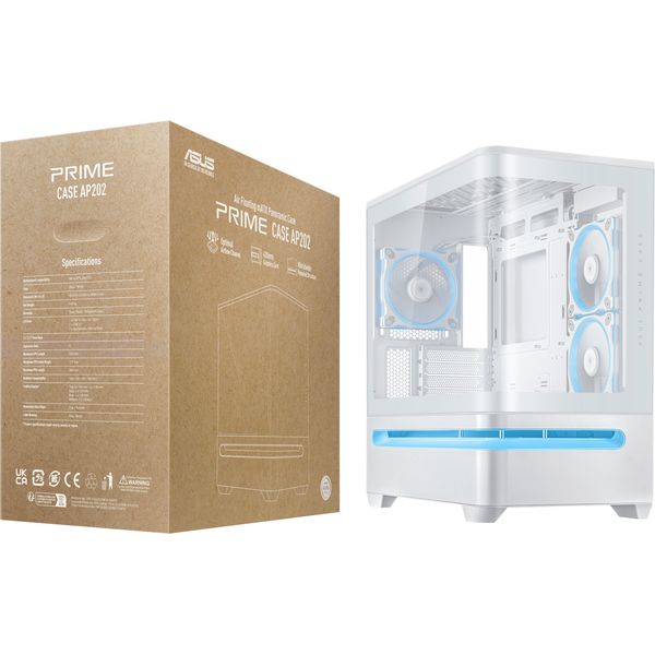 ASUS PRIME AP202 ARGB MATX CASE + 3 ARGB FANS - WHITE (PER.273174)