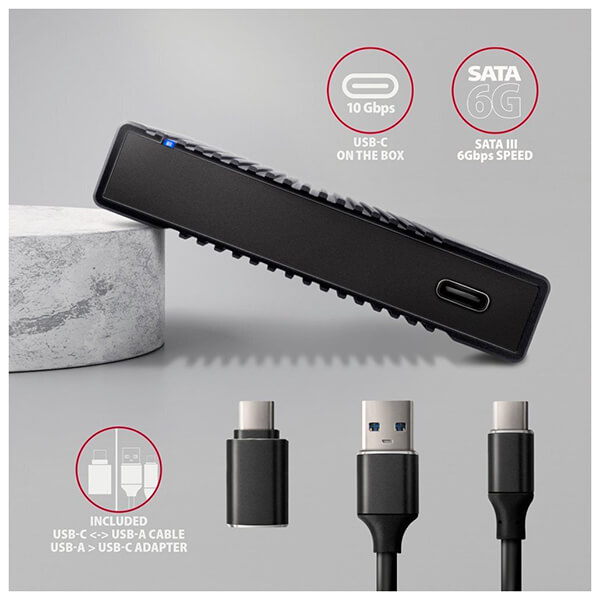 AXAGON ΕΕ25-GΤR USΒ-C 3.2 GΕΝ 2 - SΑΤΑ 6G 2.5" ΕΧΤΕRΝΑL RΙΒΒΕD ΒΟΧ ΒLΑCΚ