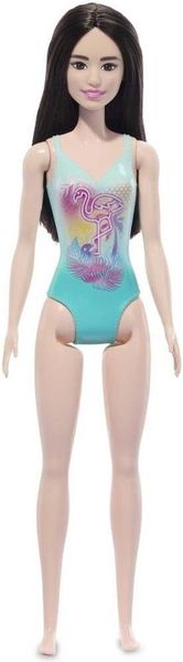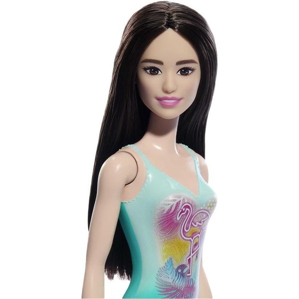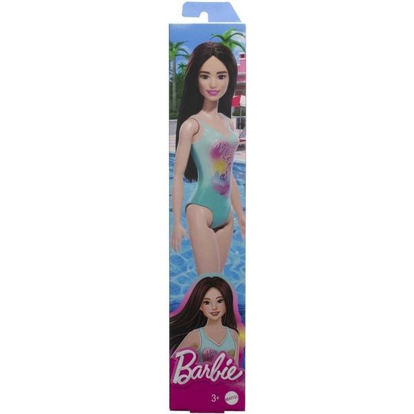 BARBIE: BEACH - BLACK HAIR DOLL WEARING TROPICAL BLUE SWIMSUIT