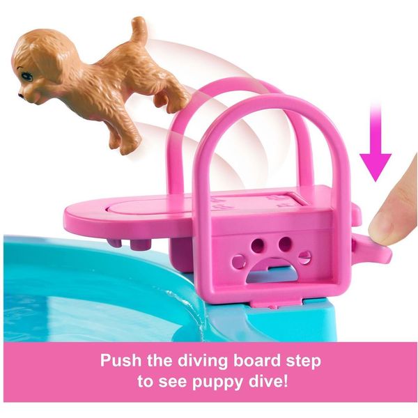 Καλώς ήρθατε στην Ονειρεμένη Πισίνα της Barbie, όπου κάθε μέρα είναι ένα διασκεδαστικό πάρτι! Τα παιδιά μπορούν να βουτήξουν κατευθείαν στο παιχνίδι με αυτό το σετ που περιλαμβάνει έξι χώρους παιχνιδιού, όπως πισίνα, τσουλήθρα, τζακούζι και πάγκο με σνακ, καθώς και πάνω από 20 αξεσουάρ. Γεμίστε την πισίνα με νερό και βοηθήστε τις κούκλες Barbie να κατέβουν την τσουλήθρα κάνοντας βουτιά! Πατήστε τον μοχλό για να δείτε τις μπουρμουλήθρες να σχηματίζονται στο τζακούζι και μετά κατευθυνθείτε στον πάγκο με τα σνακ για ακόμα περισσότερη διασκέδαση!