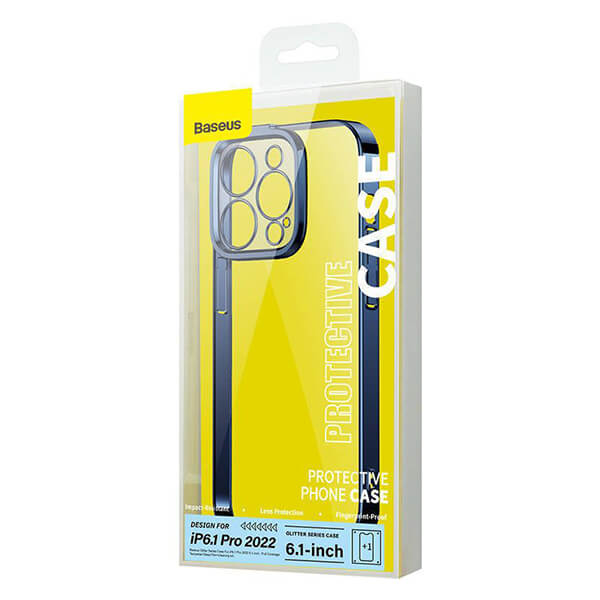 BASEUS IPHONE 14 PRO GLITTER TRANSPARENT CASE + TEMPERED GLASS SET BLUE (TEL.213052)