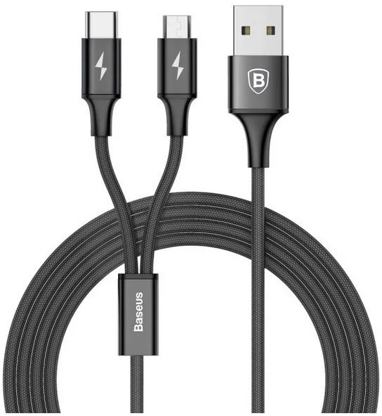 BASEUS RAPID SERIES 2-IN-1 CABLE MICRO+TYPE-C 3A 1.2M BLACK