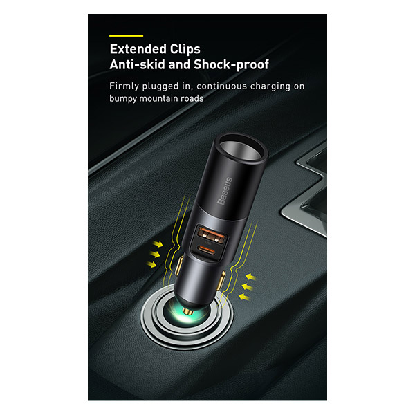 BASEUS SHARE TOGETHER FAST CHARGE CAR CHARGER WITH CIGARETTE LIGHTER EXPANSION PORT U+C 120W GRAY