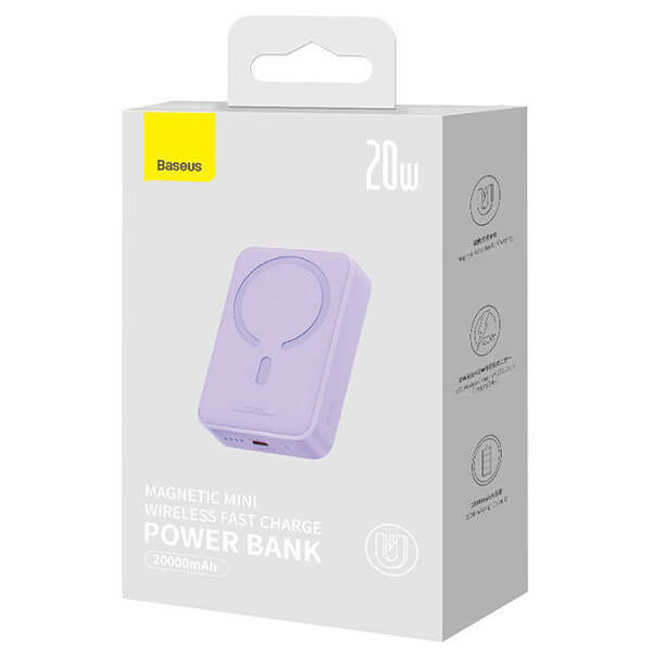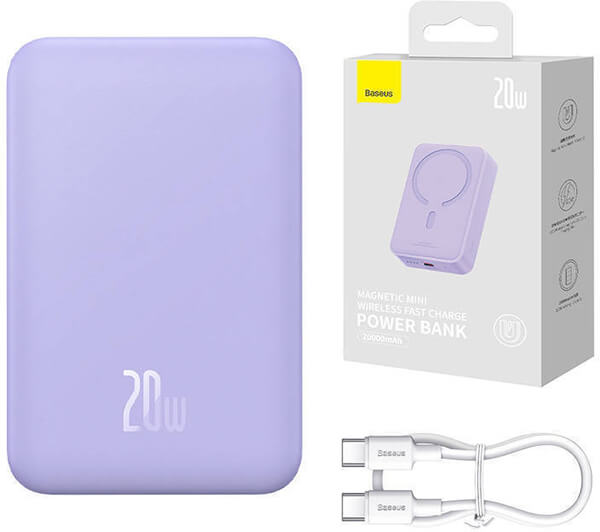 BASEUS WIRELESS POWERBANK QI 20000MAH MINI MAGNETIC MAGSAFE 20W PURPLE (TEL.210887)