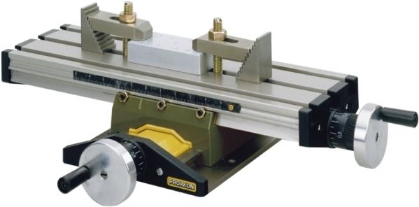 Το ΚΤ 70, μικρό και ακριβείας ιδεώδες για βάση δραπάνου MB 140/S και πρέσσας – δράπανου TBM 220. Τραπέζι εργασίας με διασταυρούμενες κινήσεις KT 70.Κατασκευάζεται από συμπαγές αλουμίνιο με επιφανειακή επεξεργασία με ρυθμιζόμενες ασφαλιστικές περόνες και τρεις εγκοπές σχήματος Τ κανονικού τύπου MICROMOT (12 X 6 X 5mm). Ρυθμιζόμενος κανόνας για την διευκόλυνση της εύρεσης κατάλληλης θέσης του προς επεξεργασία τεμαχίου. Και οι δύο χειροτροχοί έχουν δείκτες από το 0 έως την θέση επανεκκίνησης με διαβαθμίσεις που δείχνουν μία στροφή =1.0mm και 1 υποδιαίρεση =0, 05mm. Οι σφικτήρες και οι κοχλίες ασφάλισης για το MB 140/S και το TBM περιλαμβάνονται