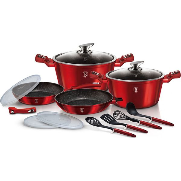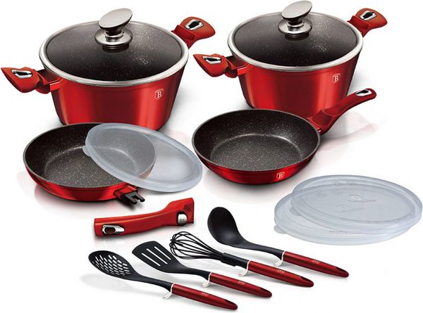Όλη η τεχνογνωσία του οίκου Berlinger Haus αποτυπώνεται στο νέο σετ της σειράς Metallic Line. Κατασκευασμένα από σφυρήλατο αλουμίνιο, τα σκεύη εξασφαλίζουν γρήγορη και ομοιόμορφη κατανομή θερμότητας. Η τριπλή αντικολλητική επίστρωση μαρμάρου σου επιτρέπει να μαγειρεύεις υγιεινά, χωρίς λιπαρές ουσίες και χωρίς να κολλάει το φαγητό.