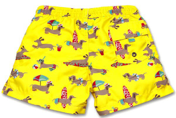 Διαθέτει διασκεδαστικό χαρακτηριστικό εκτύπωσης "hot dog" σχέδιο. Στη μέση διαθέτει κορδόνι για να μπορείτε να έχετε σταθερότητα και ασφάλεια. Διαθέτει επίσης και πίσω τσέπη με Velcro και πτερύγιο. Το μάκρος της τελειώνει ακριβώς πάνω από το γόνατο.