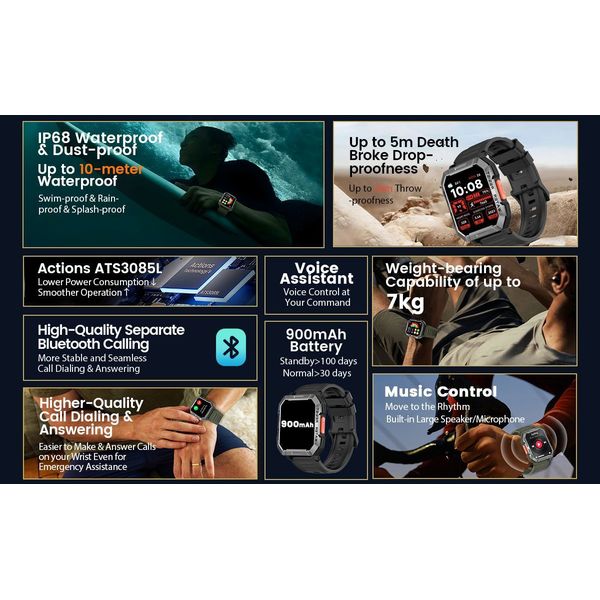 Χάρη στη συνδεσιμότητα Bluetooth 5.3 εξασφαλίζει σταθερή και αποδοτική επικοινωνία με το smartphone σας, ενώ η ισχυρή μπαταρία 900mAh προσφέρει εντυπωσιακή αυτονομία που μπορεί να ξεπεράσει τις 30 ημέρες χρήσης και πάνω από 100 ημέρες σε κατάσταση αναμονής.