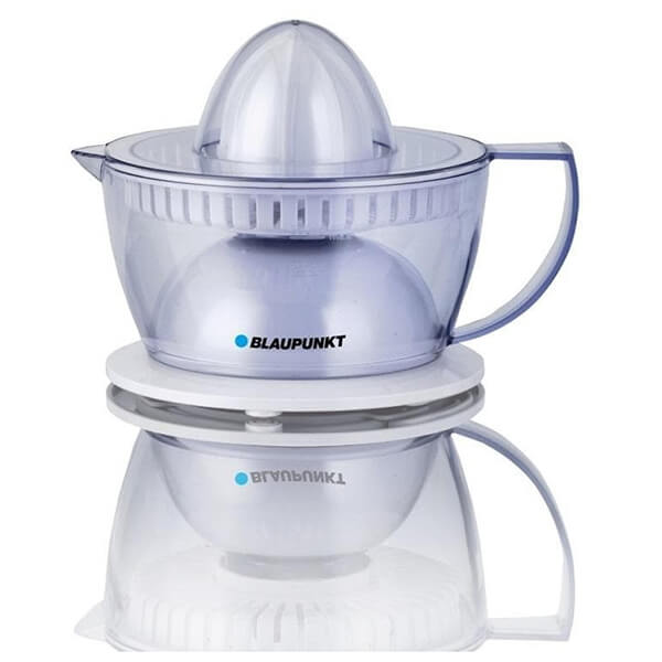 Ηλεκτρικός στίφτης CJP301, της εταιρείας Blaupunkt, με ισχύ 40 Watt. Διαθέτει έναν κώνο μικρού μεγέθους κατάλληλο για λεμόνια, και έναν κώνο κανονικού μεγέθους κατάλληλο για πορτοκάλια, ώστε να μπορείτε να φτιάχνετε χυμούς σύμφωνα με το προσωπικό σας γούστο οι οποίοι θα είναι πάντα φρέσκοι. Το φίλτρο που συμπεριλαμβάνεται θα ξεχωρίσει τον χυμό από τον πολτό και τα κουκούτσια, δίνοντας σας το βέλτιστο αποτέλεσμα και την καλύτερη γεύση. Το δοχείο συλλογής χυμού έχει χωρητικότητα 500 ml με διαβαθμισμένη κλίμακα, ώστε να είστε πάντα ενήμεροι για την ποσότητα χυμού που έχετε παράξει. Το μόνο που έχετε να κάνετε είναι να κόψετε τα φρούτα και μόλις ασκήσετε πίεση στον κώνο αυτόματα θα αρχίσει να τα στίβει. Το φρούτο θα αποχυμωθεί σε μεγαλύτερο ποσοστό, σε σχέση με έναν χειροκίνητο στίφτη και παράλληλα θα καταβάλετε πολύ λιγότερο κόπο. Διαθέτει χερούλι, ώστε μόλις τελειώσετε με τη διαδικασία του στιψίματος, να μπορέσετε να κρατήσετε το δοχείο και να σερβίρετε το περιεχόμενο στο ποτήρι σας.