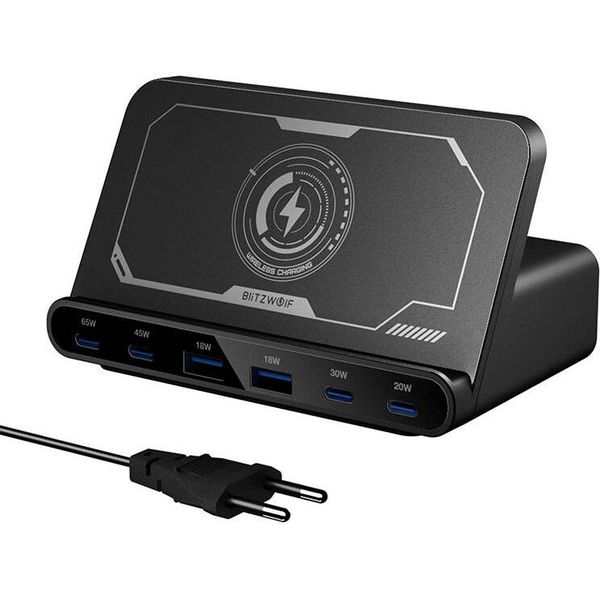 Ο BlitzWolf BW-S27 είναι ένας ισχυρός φορτιστής πολλαπλών θυρών, σχεδιασμένος για να καλύπτει τις ανάγκες φόρτισης πολλών συσκευών ταυτόχρονα. Με συνολική ισχύ έως 160W, 4 θύρες USB-C, 2 θύρες USB-A και ασύρματη φόρτιση έως 15W, αποτελεί ιδανική λύση για smartphone, tablet, laptop και άλλες συσκευές. Υποστηρίζει σύγχρονα πρωτόκολλα γρήγορης φόρτισης, ενώ η έξυπνη κατανομή ισχύος χάρη στην τεχνολογία τεχνολογία με chip MOS και δύο ICs, εξασφαλίζει αποδοτική και ασφαλή λειτουργία για κάθε συνδεδεμένη συσκευή.