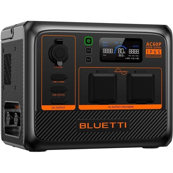 BLUETTI PREMIUM AC60P PORTABLE POWER STATION EXPANDABLE IP65, 600W AC OUTLET 504WH